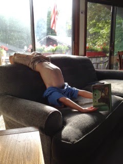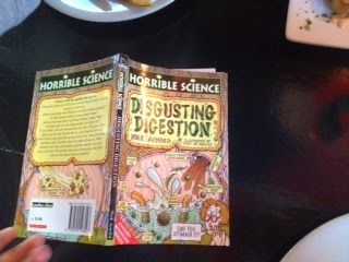 | Leo read this at a restaurant, while waiting for our food to arrive. He then wanted to tell me what, on my salmon, could make me ill. Quite an interesting birthday dinner. |