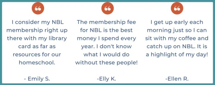 I’d love for you to step outside of that ol’ proverbial box and join the fun! Right now, download a free copy of our monthly playbook! Our members love our NBL Playbooks! These ebooks keep your children and teens busy and learning all month long.